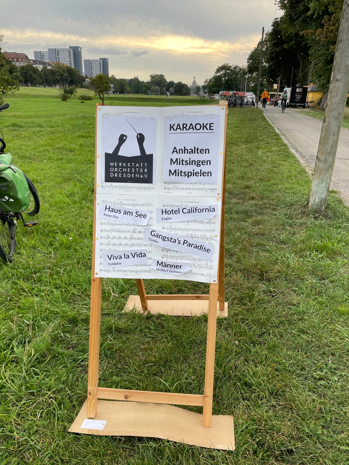 Auch so klingt Dresden - Live Karaoke mit Orchester am Elbufer. Mit Pauken und Trompeten ging es auf der Wiese gegenüber vom Fährgarten Johannstadt in den Dienstag Abend.