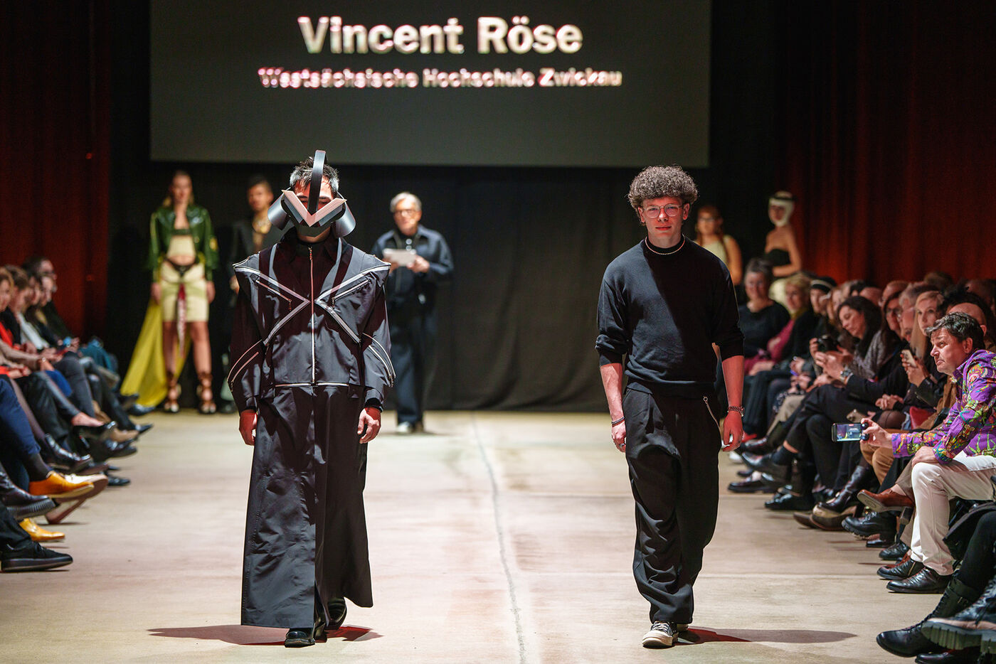 - Ein Model (li.) trägt das preisgekrönte Designerstück auf dem Laufsteg - rechts daneben Vincent Röse.
