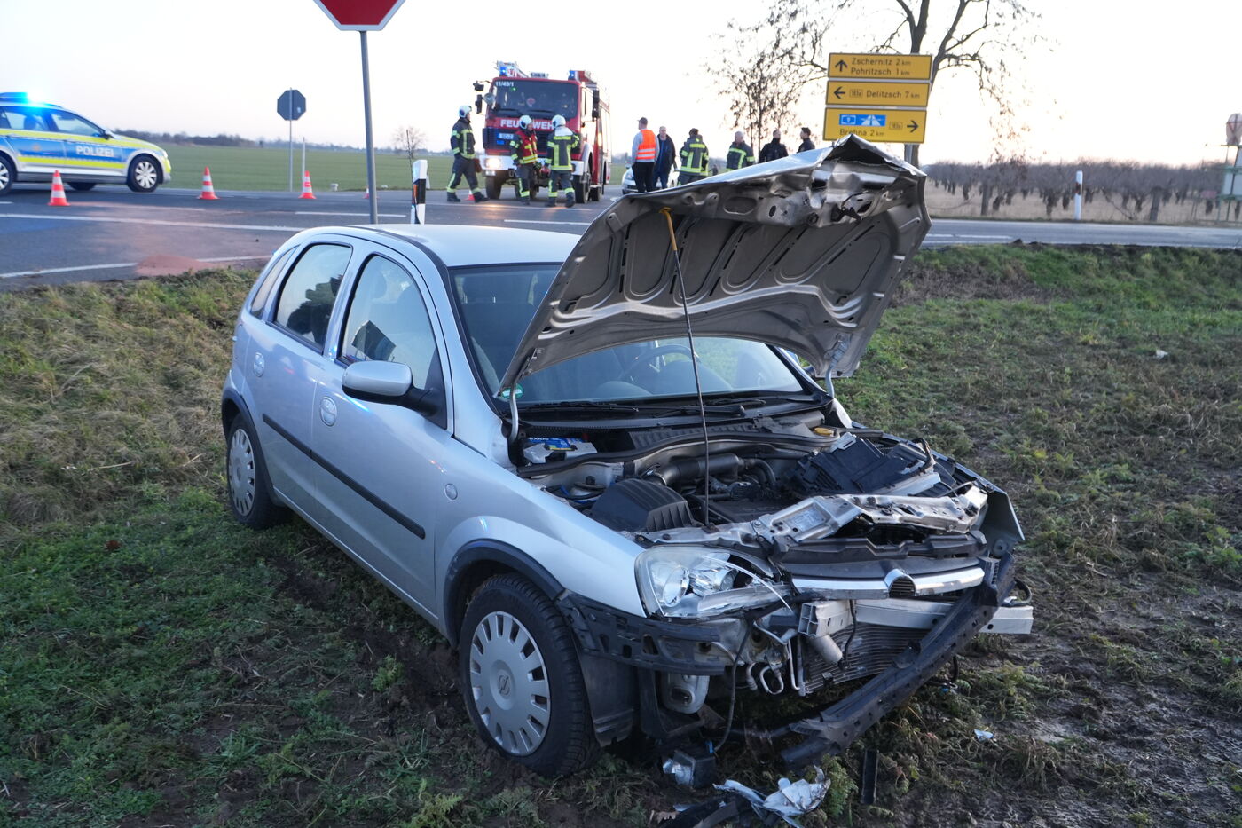 Bei einem heftigen Zusammenstoß nordwestlich von Leipzig sind am Mittwochabend insgesamt fünf Menschen teils schwer verletzt worden, darunter zwei Kleinkinder. Zwei Autos sind gegen 17 Uhr an der Kreuzung B183a / Serbitzer Straße kollidiert. Der Fahrer eines Opels wollte die Bundesstraße offenbar queren und hat dabei die Vorfahrt einer Hyundai-Fahrerin missachtet.