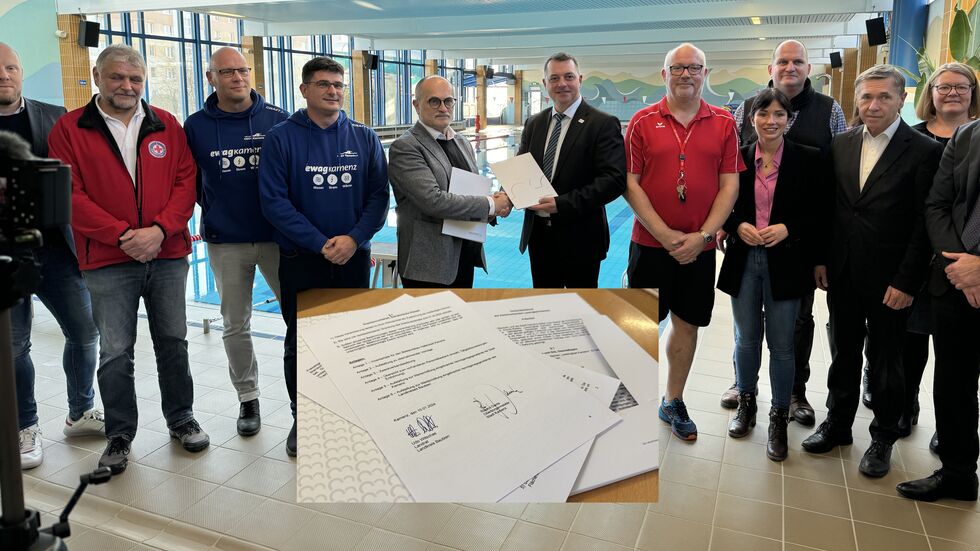 Kamenz und der Landkreis demonstrieren Einigkeit. Oberbürgermeister Roland Dantz und Landrat Udo Witschas haben heute die Verträge für die Gründung des Zweckverbandes „Lessingbad“ unterzeichnet. Sollte die Landesdirektion Sachsen keine Einwände haben, kann der Verband im April gegründet und Fördermittelantrag für den Badneubau in Kamenz gestellt werden. Der Zweckverband wird das neue Bad betreiben. Die Inbetriebnahme ist im dritten Quartal 2030 geplant. Bis dahin soll die marode Schwimmhalle geöffnet bleiben. Allerdings könne das nicht garantiert werden, so Landrat Udo Witschas mit Blick auf Zustand und Alter des Bades.