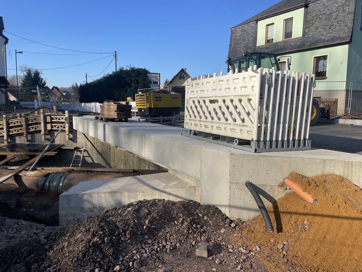 Über ein Jahr lang wurde an der Brücke über den Wildenfelser Bach gebaut. Die alte Natursteingewölbebrücke aus dem Jahr 1900 musste abgerissen und durch ein Stahlbetonbauwerk ersetzt werden.