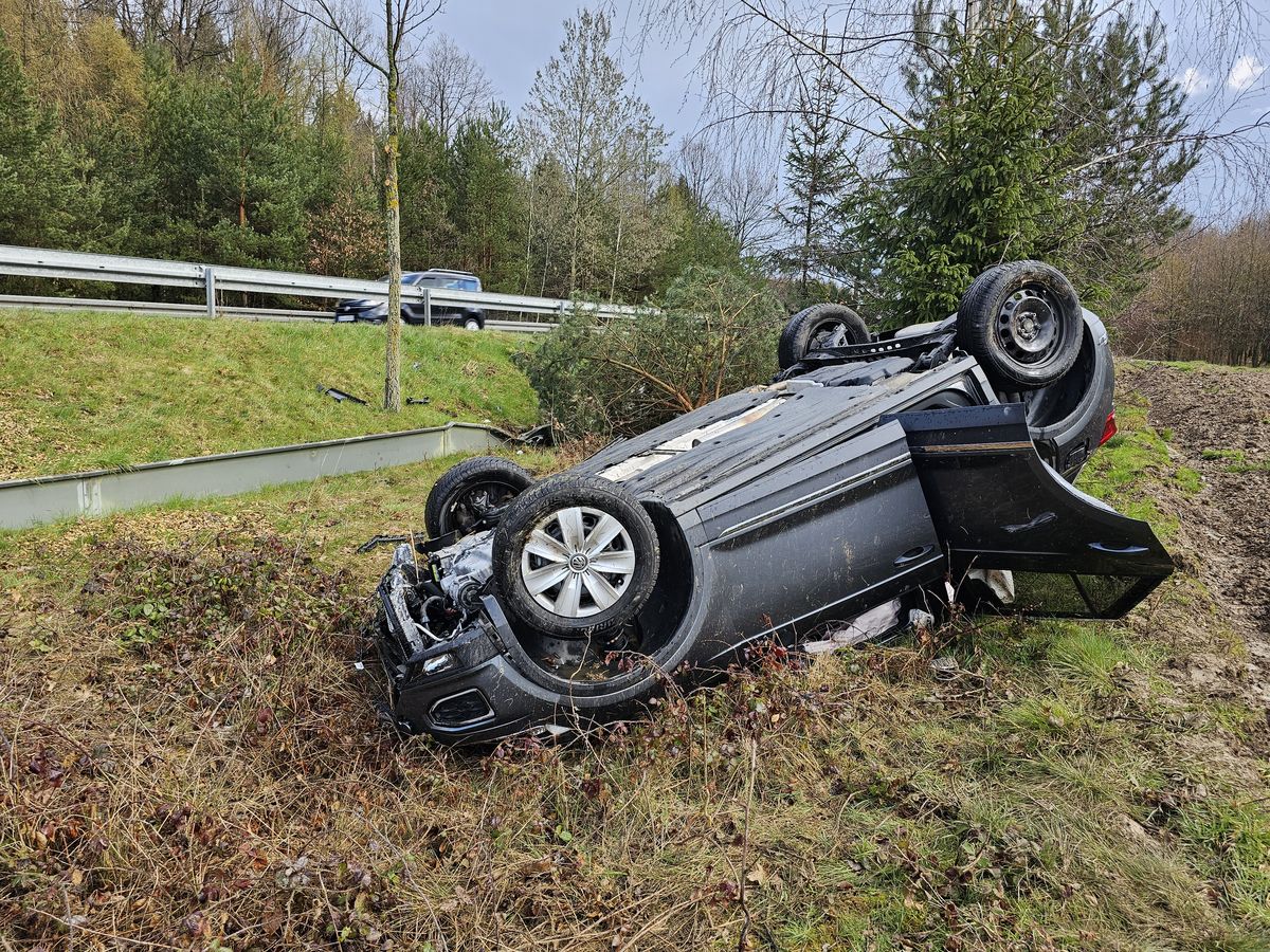 Der VW überschlug sich und landete neben der Straße auf dem Feld.