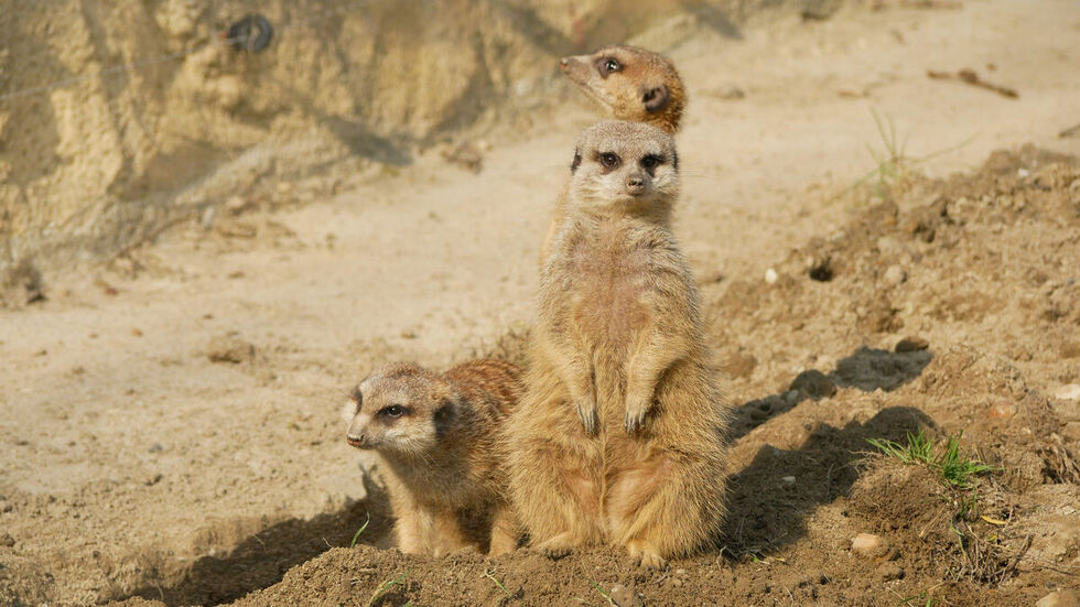 Erdmännchen-Königin Heidi im Zoo Hoyerswerda hat wieder Gesellschaft. Zwei Erdmännchen-Jungs aus Berlin sind da. Sie waren zunächst in Quarantäne. Nun sind alle drei in der Außenanlage zu sehen. Heidi habe sich mit den Buben auf Anhieb verstanden, freut sich Tierpflegerin Heidi Sladek.