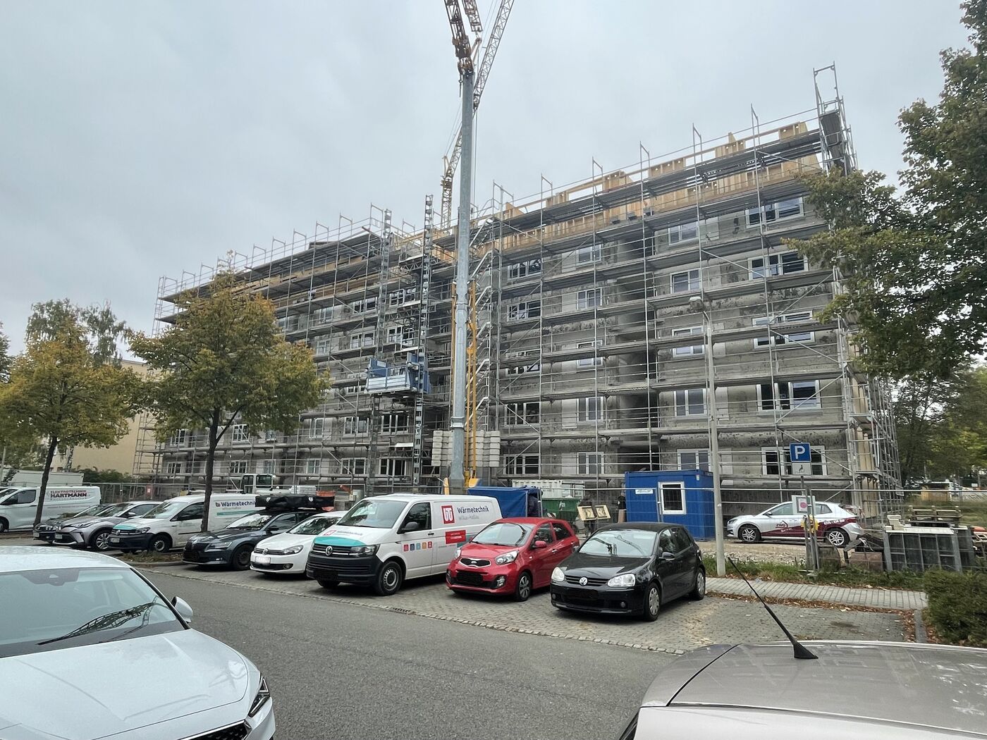 Richtkranz über einem betagten Neubaublock
