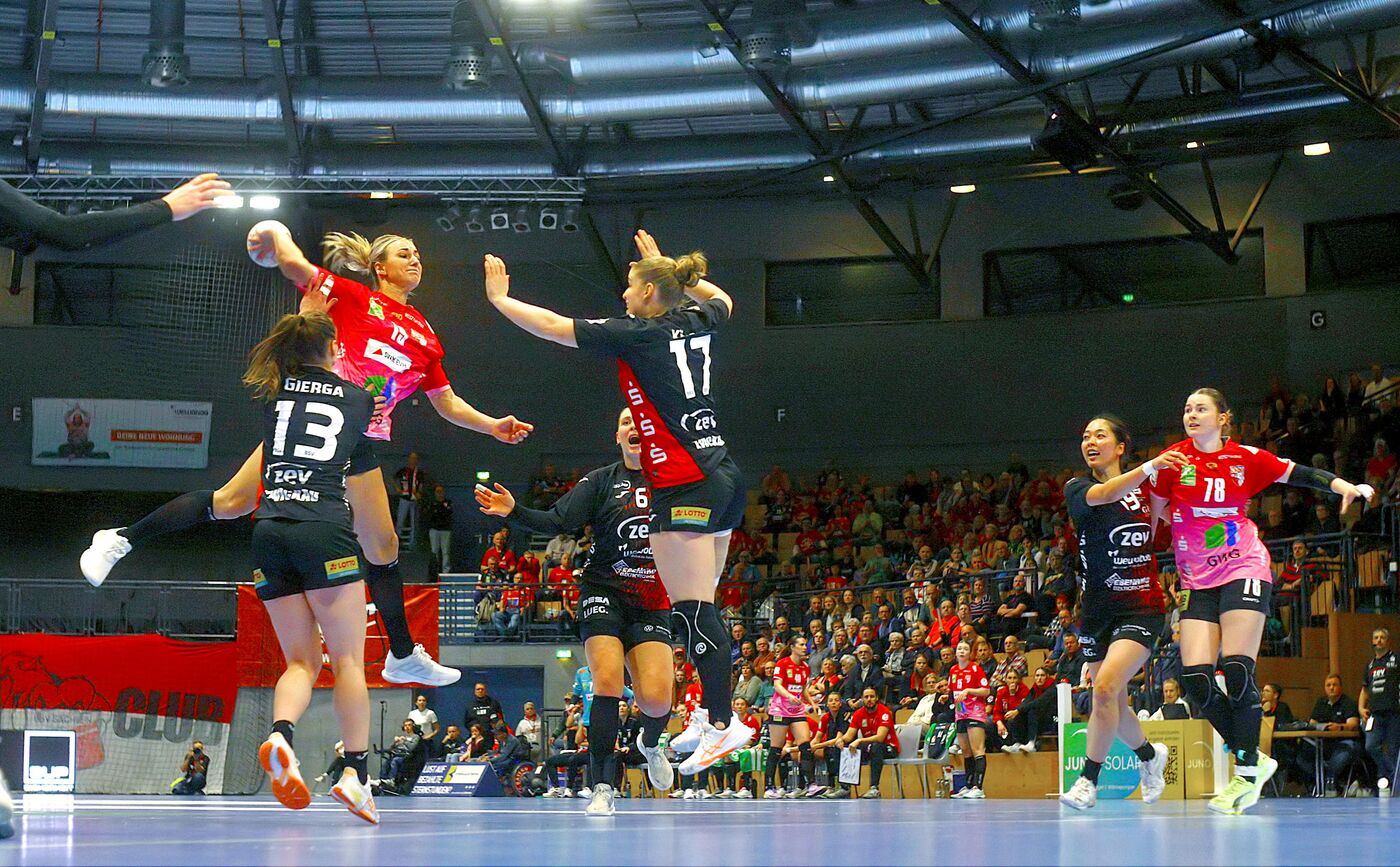 Der BSV Sachsen hat sein Heimspiel am Donnerstagabend gewonnen. Mit 30:23 bezwangen die Zwickauerinnen in der Sparkassen-Arena die Gäste aus Halle Neustadt. Es ist der erste Sieg in der aktuellen Bundesligasaison. 1.476 Zuschauer sahen die Partie, die zur Halbzeit noch ausgeglichen war.